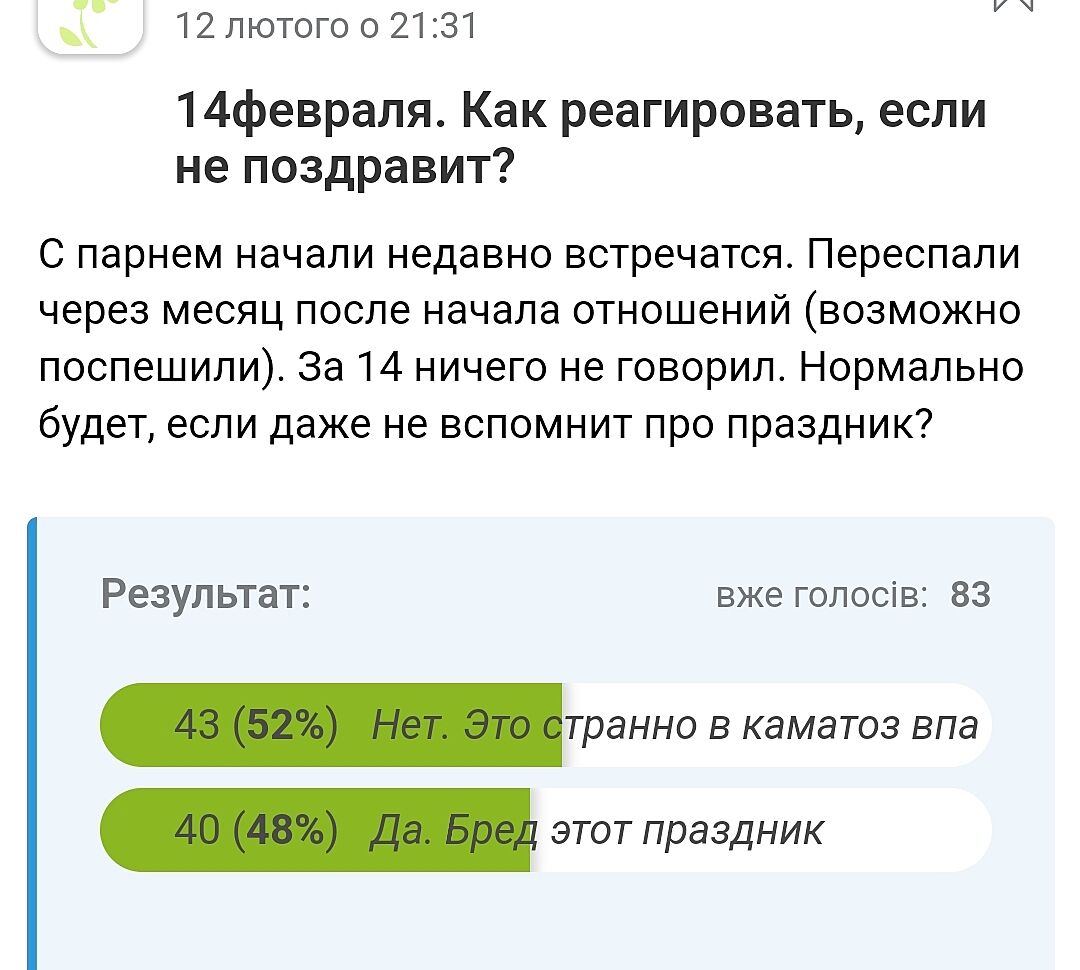 Зато бывший скинул куча валентинок. Плюс спросил как я. Мило поболтали(((