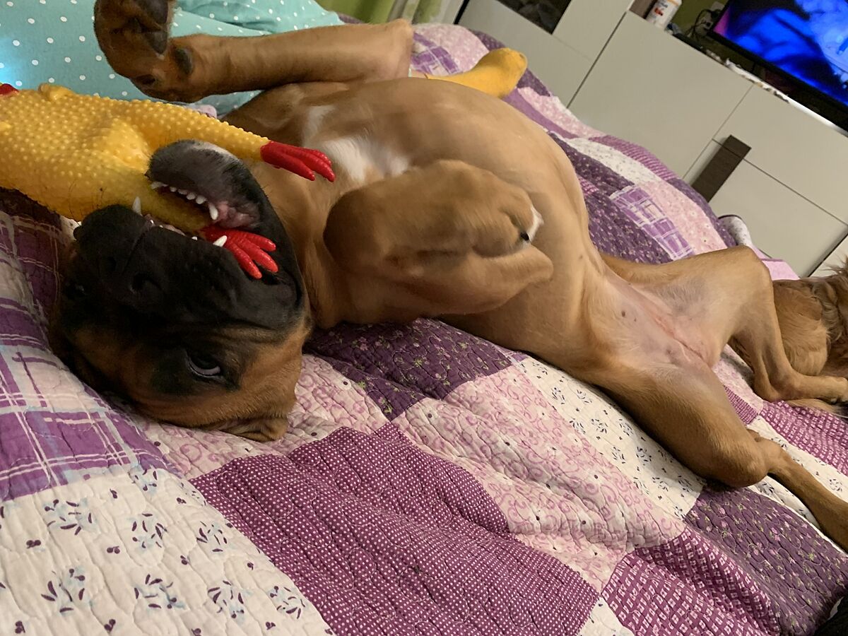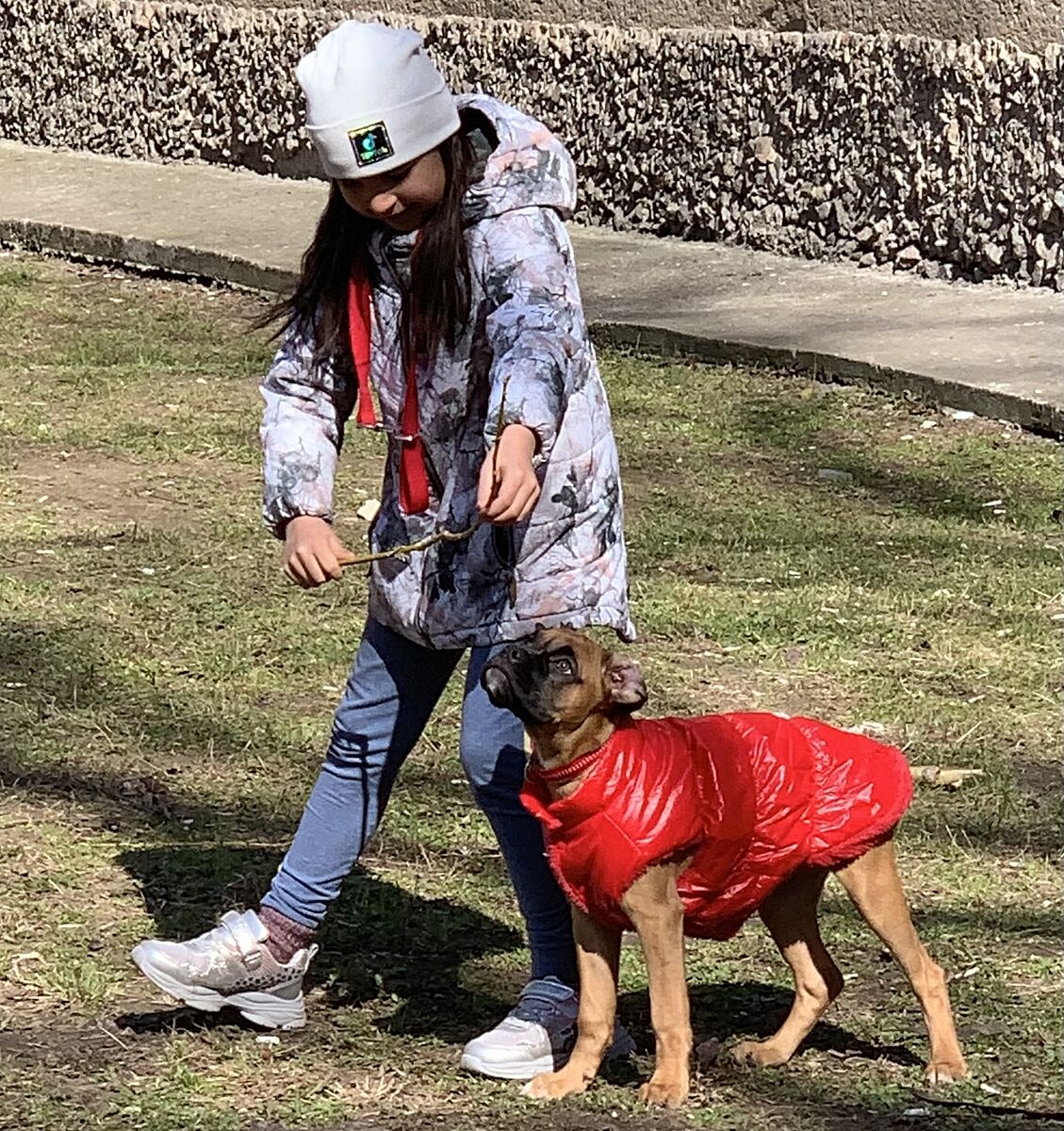 Это боксер.1. Очень добрая и веселая, у меня третья собака этой породы, они до старости щенки.