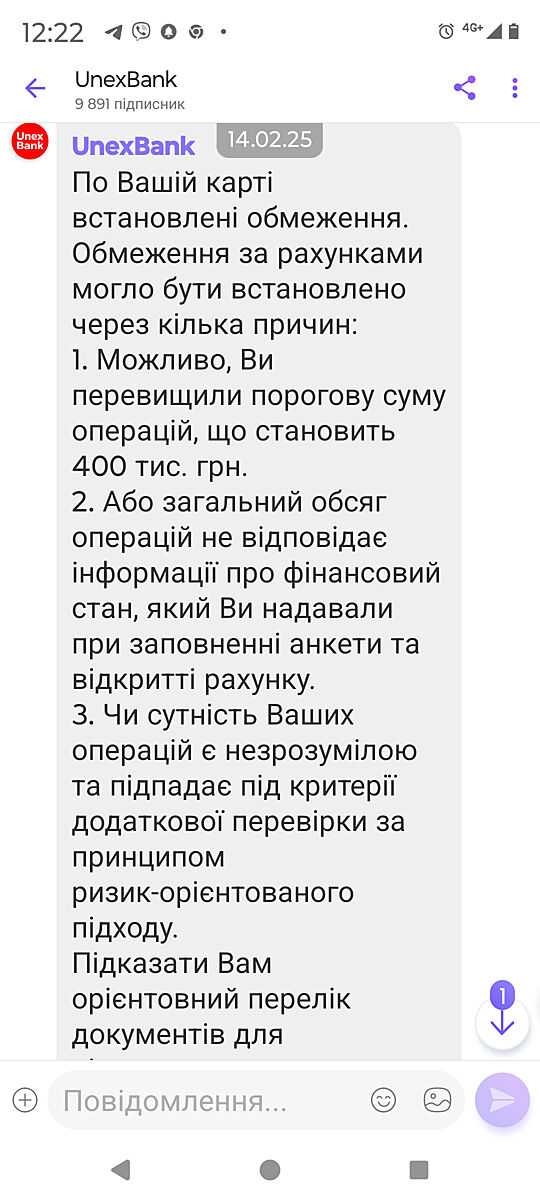 14 лютого було надходження 9(!!!!) тис від 5 різних отримувачів , ввечері карта заблоковано, дзвоню в банк , питаю, кажуть система фін моніторінга заблокувала карти і причини . Треба писати пояснювального листа з дія підписом , потім розглядають і вирішують