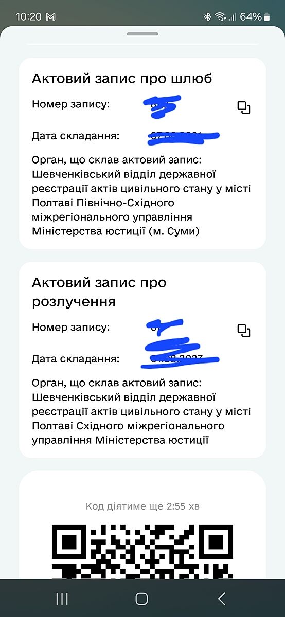 В мене такого немає, лише свідоцтво про шлюб. В Дії мені пише, що я одружена.