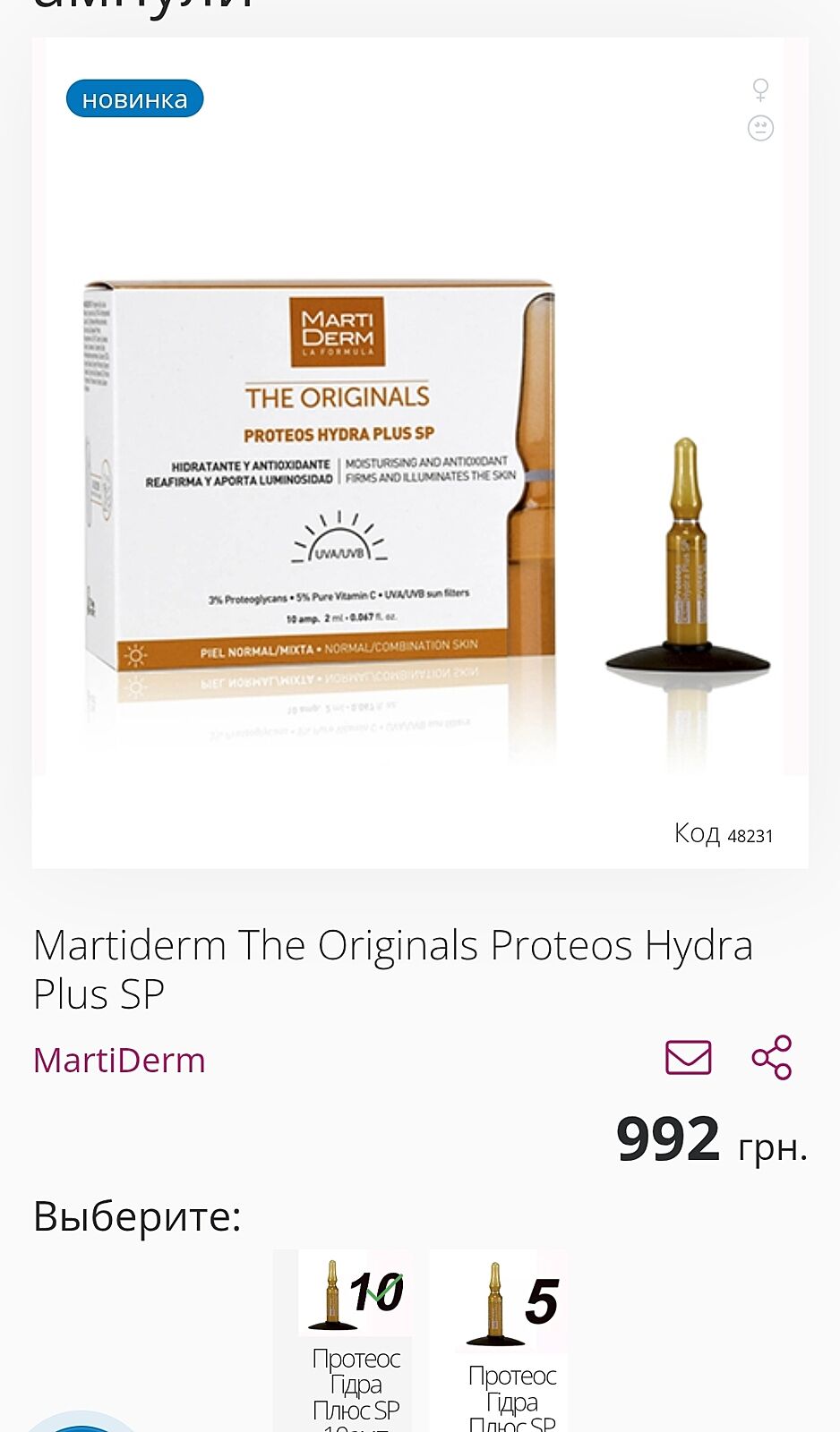 Вы пробовали ампулки Мартидерм, это испанский бренд. Они в районе 750 - 800 грн 10шт, это на 20 дней курс. Очень круто работают. Правда, они разделены, либо день с СПФ, либо ночь с ночными активами. Всегда везу их из Испании пачками, очень люблю.