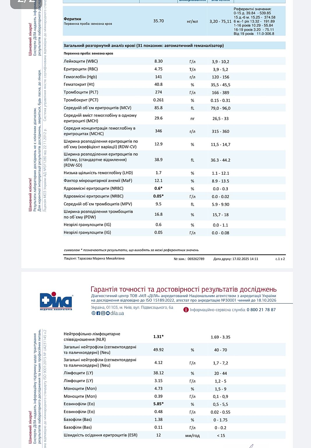 Всі інші показники в нормі, трохи завищені еозінофіли.