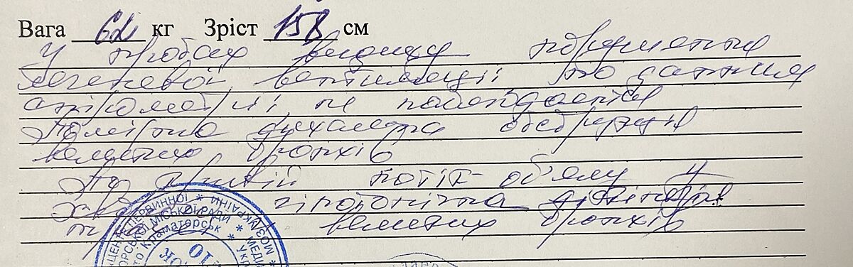 У пробах видиху порушення легеневої вентиляції по даним аерометрії не наблюдаються.