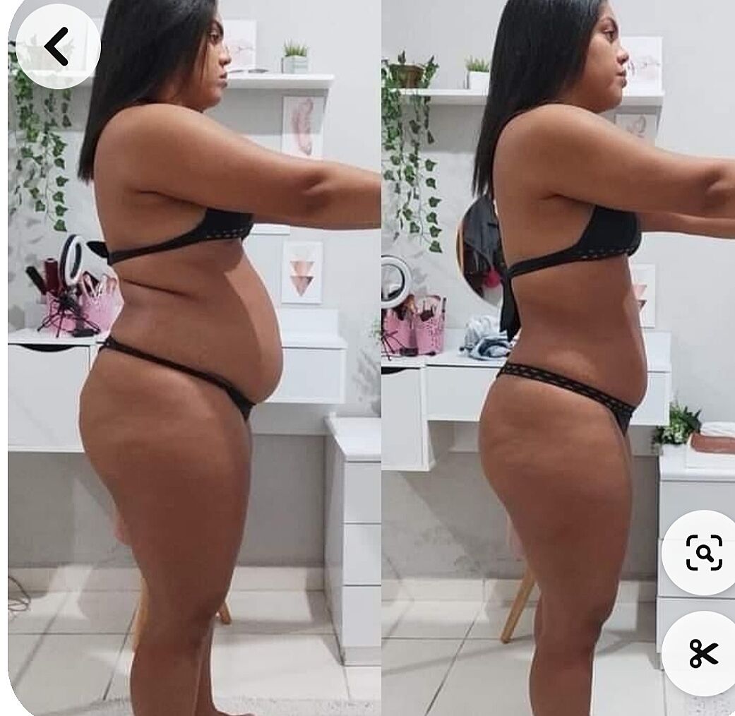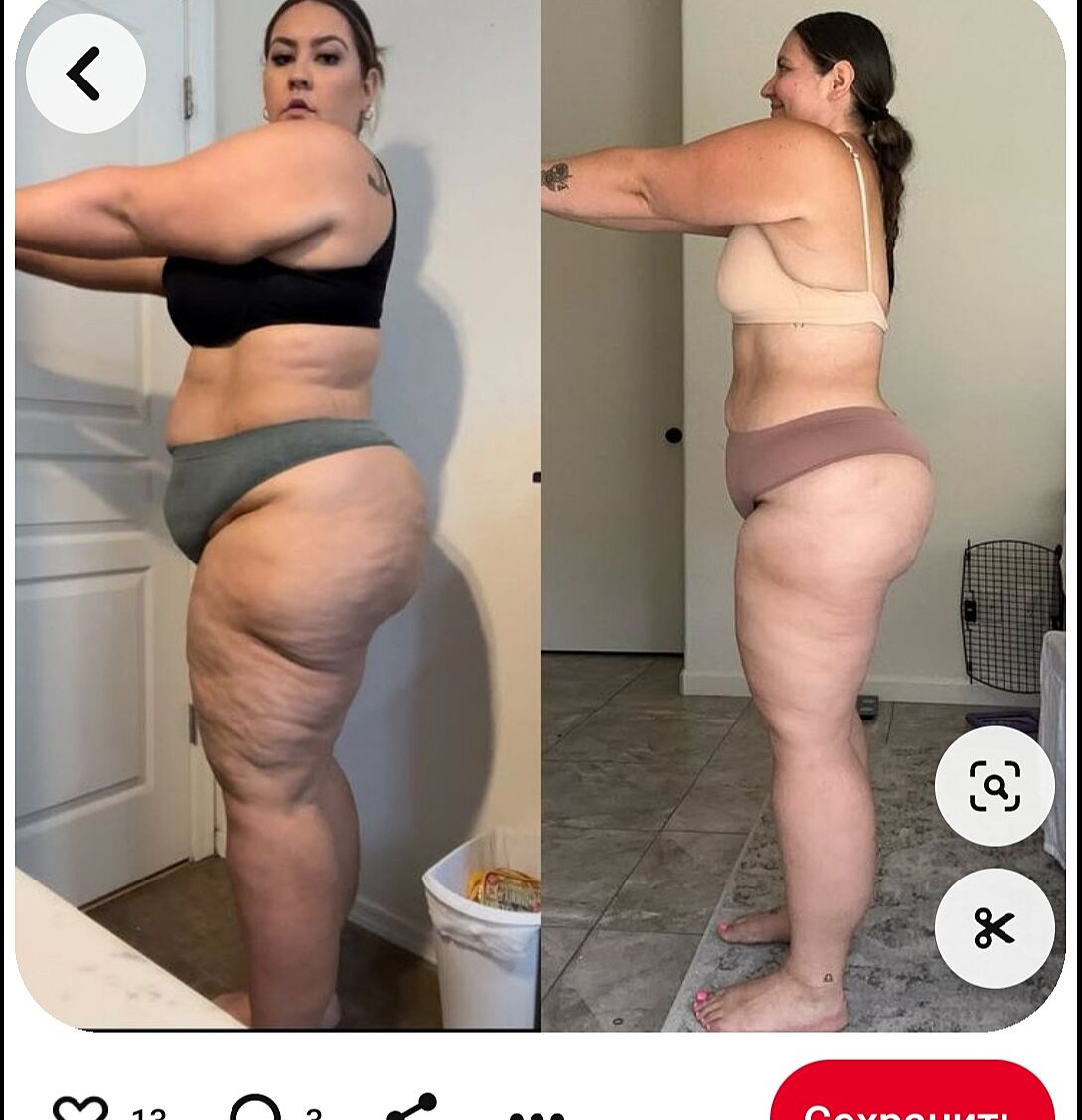 У мене була приблизно така різниця, коли я скинула 9 кг. Це не за місяць. Там і живіт, і попа, і стегна.