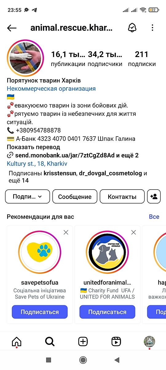 Автор, телеграмм канал Дім для тварин, разместите там, не знаю будет ли толк, там очень много животных каждый день выкладывают. Деньги на них собирают? Могу только на корма скидывать какую-то сумму. Если Купянск возьмут, может снова уезжать придется, если двинутся в нашу сторону, а у меня кот и собака, да еще у свекров коты и собака, надо будет мне о них думать, они точно с ними возиться не будут, их бы самих заставить уехать. Искать буду дом в селе, чтобы заселить всю живность, это к вопросу, что не сдают жилье. Да, работы в селах нет, но об этом будем думать потом, а пока надеемся, что до этого не дойдет, мы немного дальше, не совсем рядом.