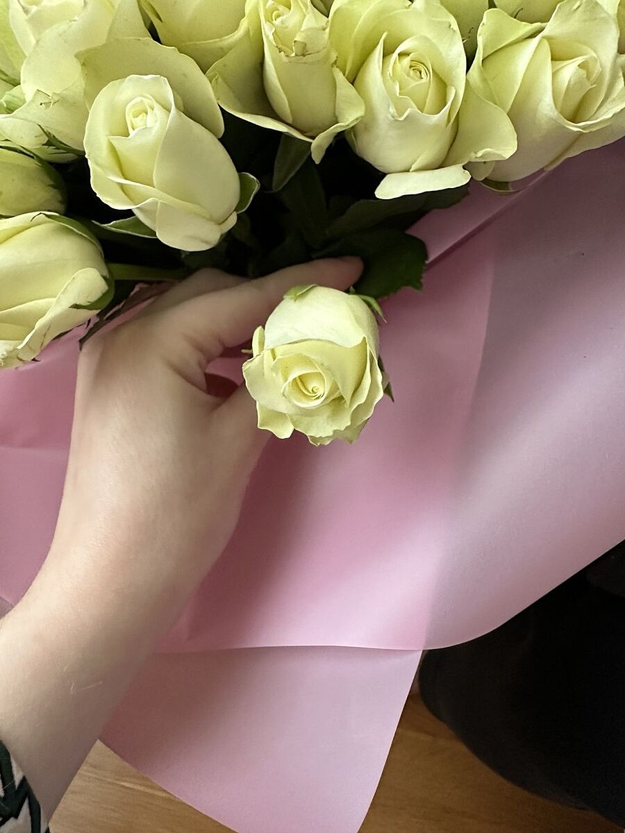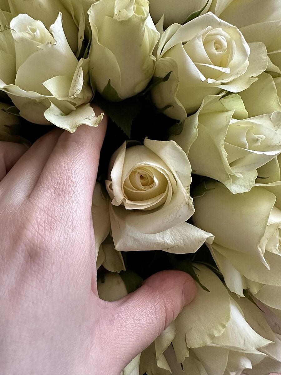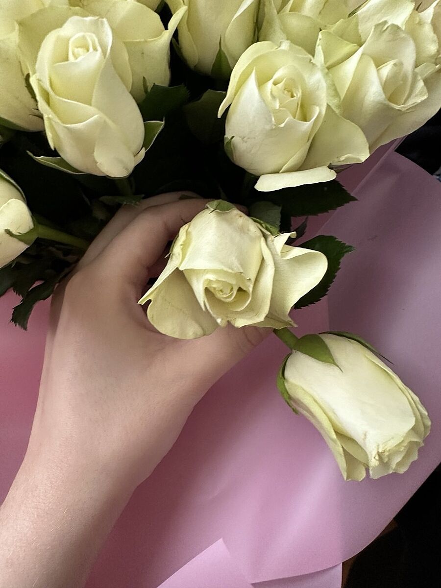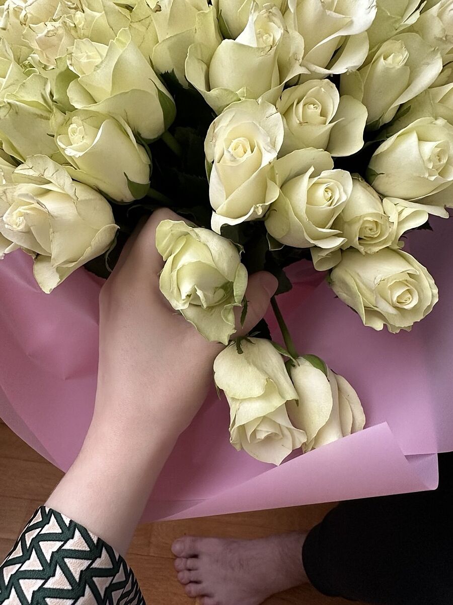 Заказывала цветы в интернет магазине, первое фото из их сайта (101 белая роза), второе фото мое я скинула, какие розы я ожидаю и хочу (раньше у меня он был, там было 71 роза, тяжеленный букет). Мне консультант ответила, что могут сделать такой же из таких же роз.