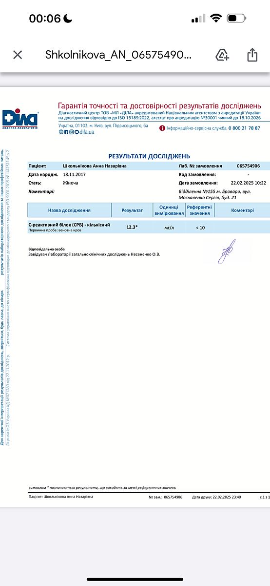 Дякую, заспокоїли, чекаю ще Р білок, поки не має аналізу. Трохи лякає цей кашель, але і сама бачу що горло ну звичайне. Ніяких набряків та почервоніннь. Не хворіли довго