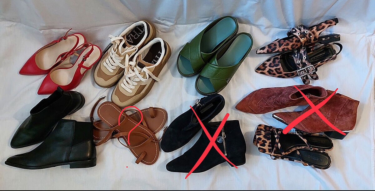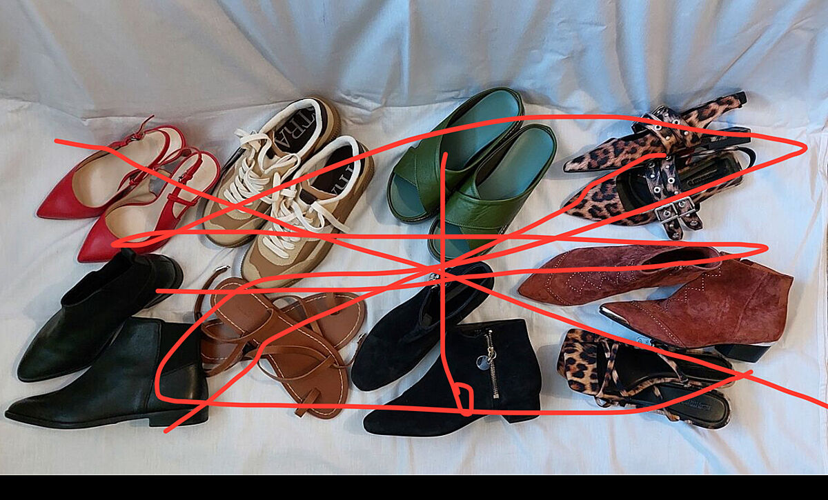 Мне не нравится что три пары почти одинаковых ботинок на сезон, который в Украине длиться пару недель. Черные одни любые точно убирать, они выглядят одинаково. Все остальное- ну зависит от вашего стиля. Две пары леопарда я бы тоже не брала, через год обе будут смотреться устаревшими.