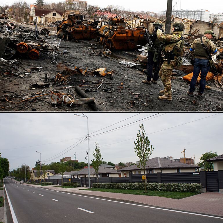 Це наша Вокзальна на Бучі. Відновив за свій рахунок благодійний фонд Баффета. Тепер новенька вулиця, акуратні будиночки, забори.