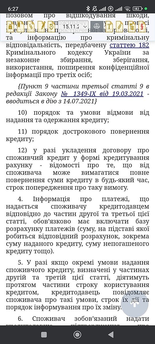 3. Кредитодавцю забороняється відмовляти споживачу в прийнятті платежу у разі дострокового повернення споживчого кредиту.