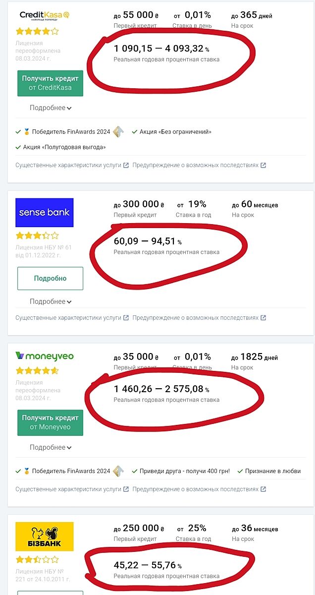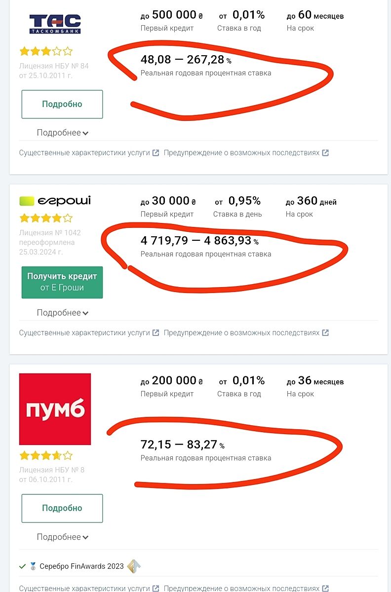 Ой, это ужас!! Но они же на месяц максимум дают, да? Не видела что там на год можно взять. Друг как то так влип з швидко гроші. Ему там такой % насчитали еще и всем звонили :(