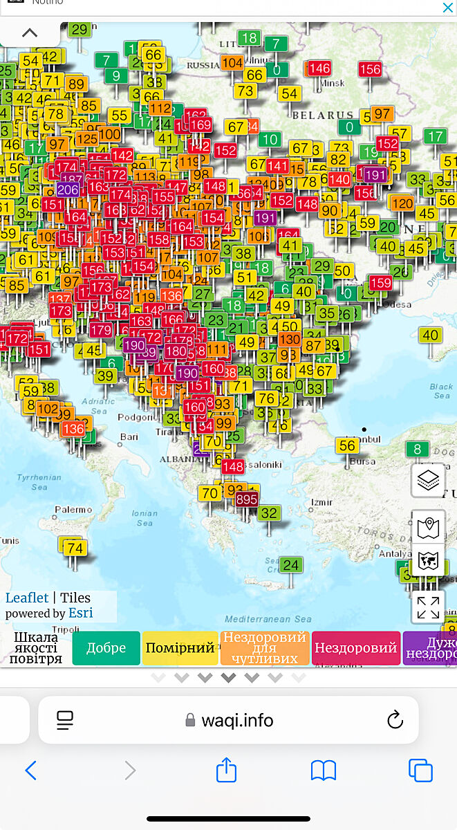 Підтримую щодо Польщі. Минулий тиждень не виходили на вулицю з дітьми. На околицях міста рівень був близько 200, а взагалі по Польщі до 570 доходило. Першіння в горлі та кашель постійний. В Києві, крім поганого запаху, нічого подібного не пам´ятаю.