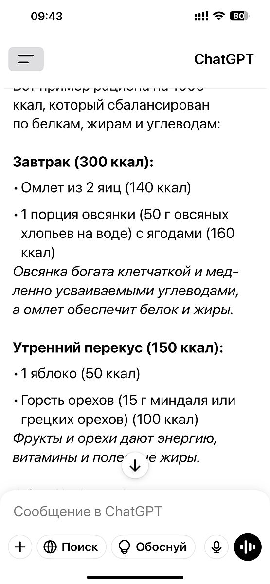Якби вам довелося скласти раціон на 1000 калорій у день, що б ви в нього включил
