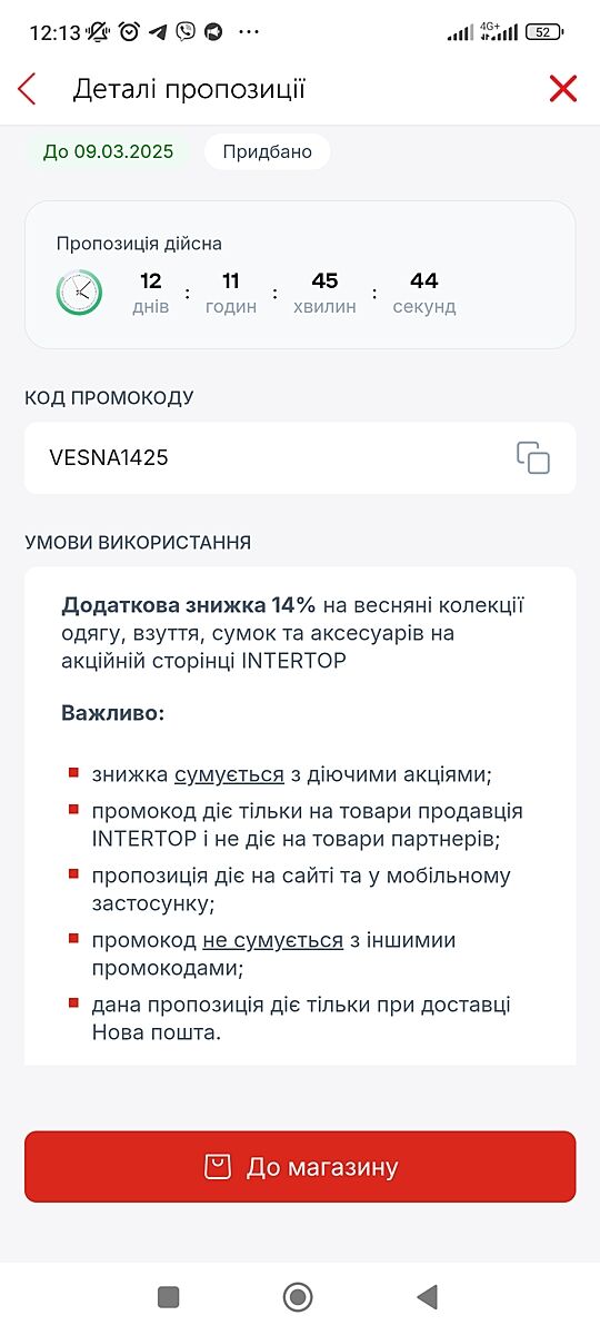 Может кому-то будет актуально, промокод VESNA1425 до 09.03.2025. Условия использования прикреплю на фото