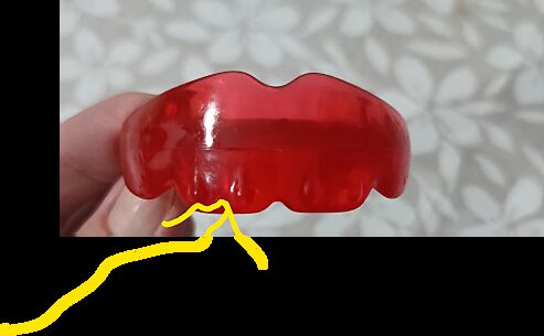 Второе ваше фото, это верхнее небо, то не вырез под уздечку, зубы должны находиться в ложе