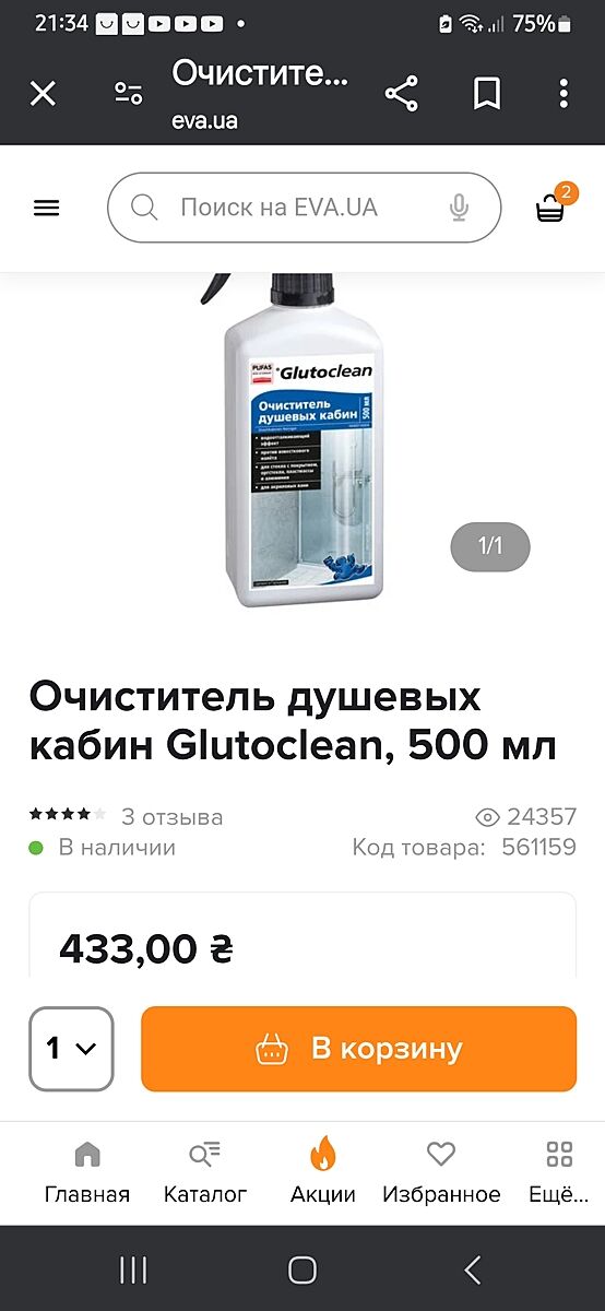 Самое лучшее что я пробовала.На створках в душевой кабине никаких разводов,можно даже не смывать, а просто побрызгать.Покупала всегда в Епицентре, а теперь и в Еве появилось.Этой фирмы все средства шикарные