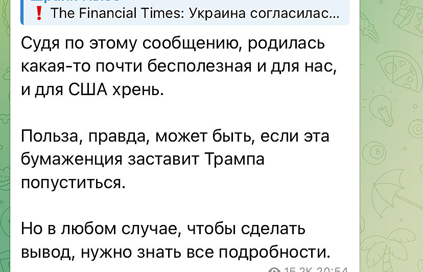 Та мне в принципе тоже чисто из любопытства. Если это даст конец войне - ок. Но хоть понимать как сильно нас поимели.