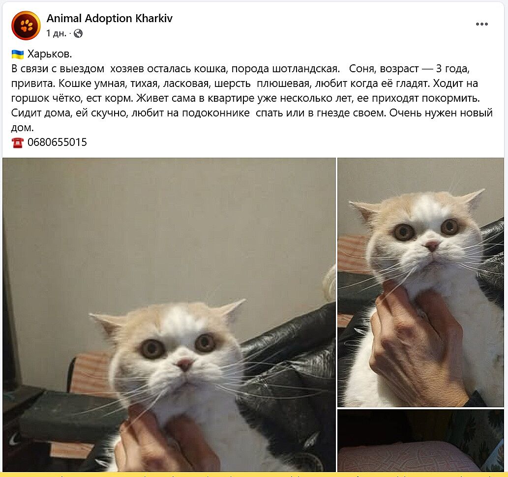 Котик весь час сидить під будинком на морозі. Раніше він мешкав у теплій затишній квартирі. Але господарі виїхали з Харкова, а пухнастика лишили просто неба. І він сидить на картонці очікуючи господаря, нікуди не йде від будинку, У Харкові дуже зимно, температура сягає вночі до 17 градусів морозу. Допоможіть врятувати сіренького, поки холодна харківська зима не забрала у нього єдине, що лишилося, його маленьке котяче життя.