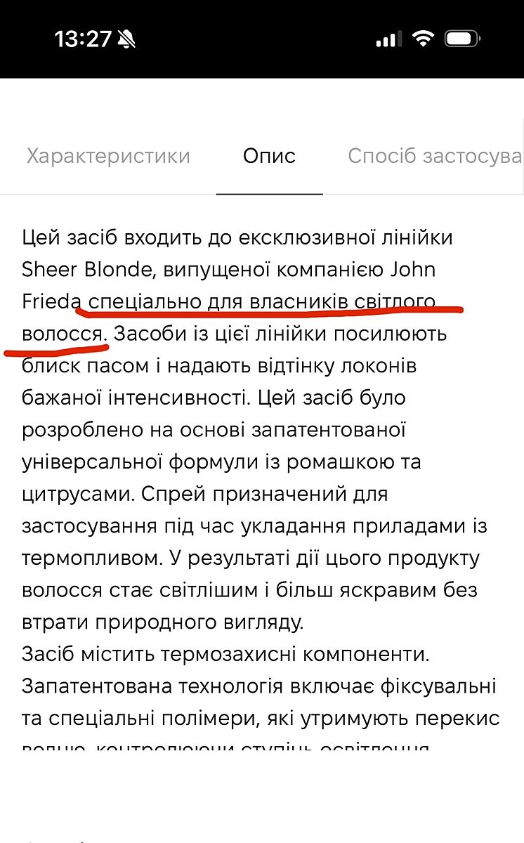У меня волосы русые с мышиным оттенком, глаза серо голубые. Много лет осветлялась до цвета белой стены. Убила волосы. Отрастила свой цвет. С натуральным ходила лет 5. Надоел. Темный цвет мне категорически не идет, осветляться не вариант. Купила спрей , он дал моим волосам пшеничный оттенок, теплый. Мне нравится и волосы не портит
