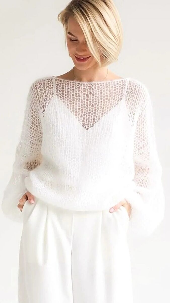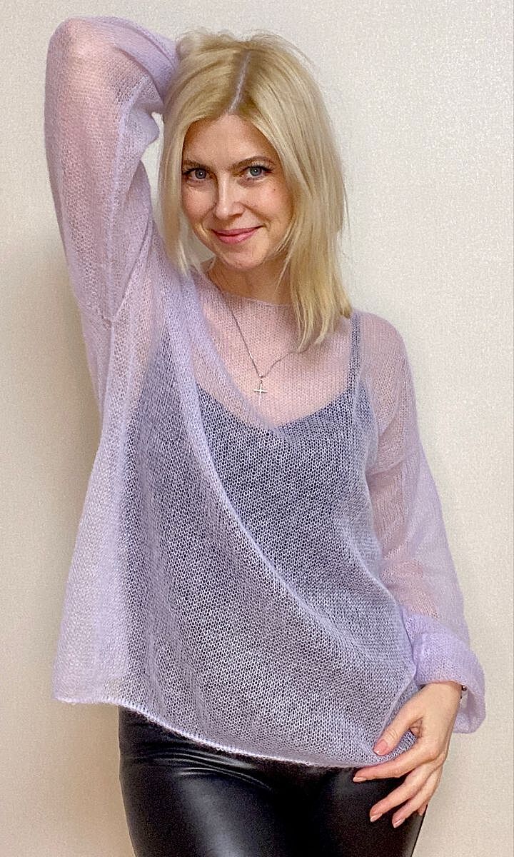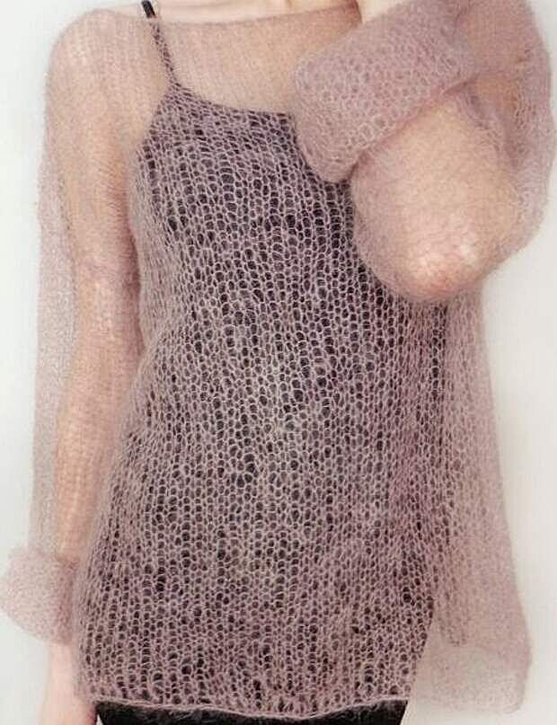 У меня подобная паутинка, но тоньше, надеваю на длинное атласное платье в бельевом стиле на тонких бретелях, сверху ремень и перед свитера заправляю под него. Платье и свитер в одном цвете