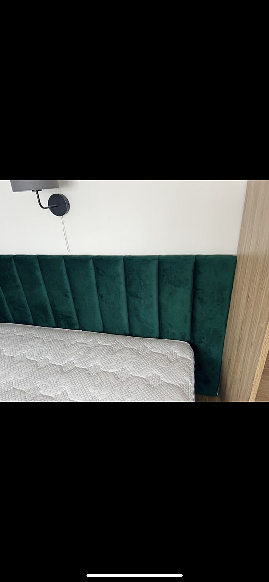 Изголовье текстильное, смягченное, потому что любим почитать в кровати.