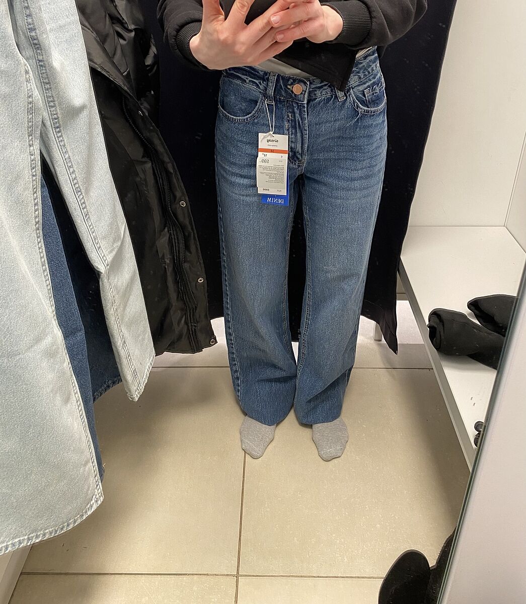 Розмір одягу повинен відповідати розміру людини, яка той одяг носить. Тут джинси на два розміри більші, ніж треба.