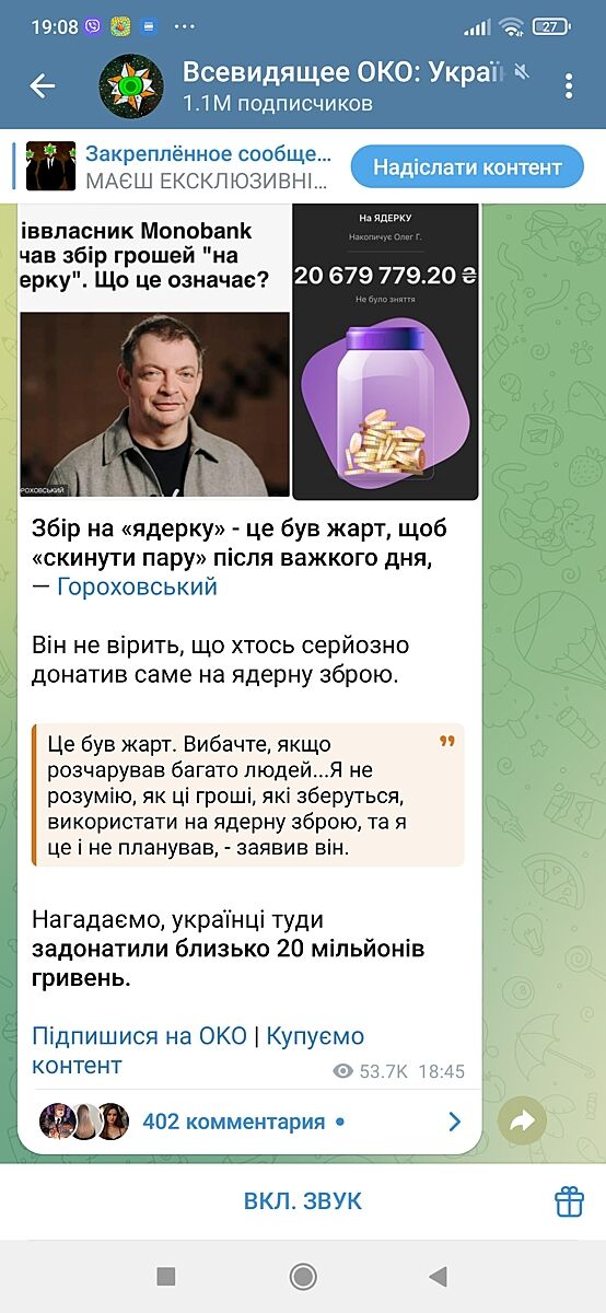 Там написано, на прохання українців Гороховський відкрив збір на виробництво ядерної зброї.