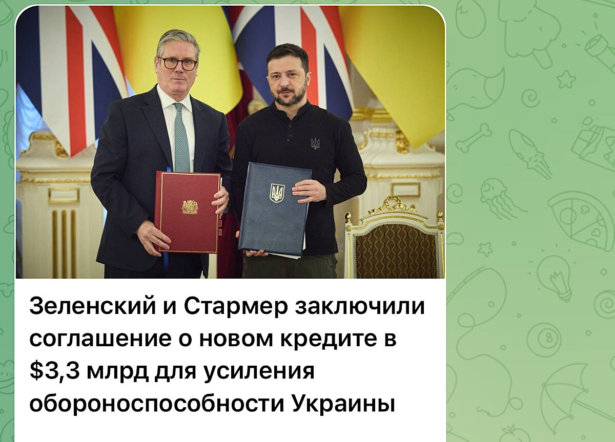 Так этот кредит подкреплён тем, что уже передано Британии... Это входит в ´секретную часть’ 100-летнего договора, который недавно подписали Стармер и Зеленский...