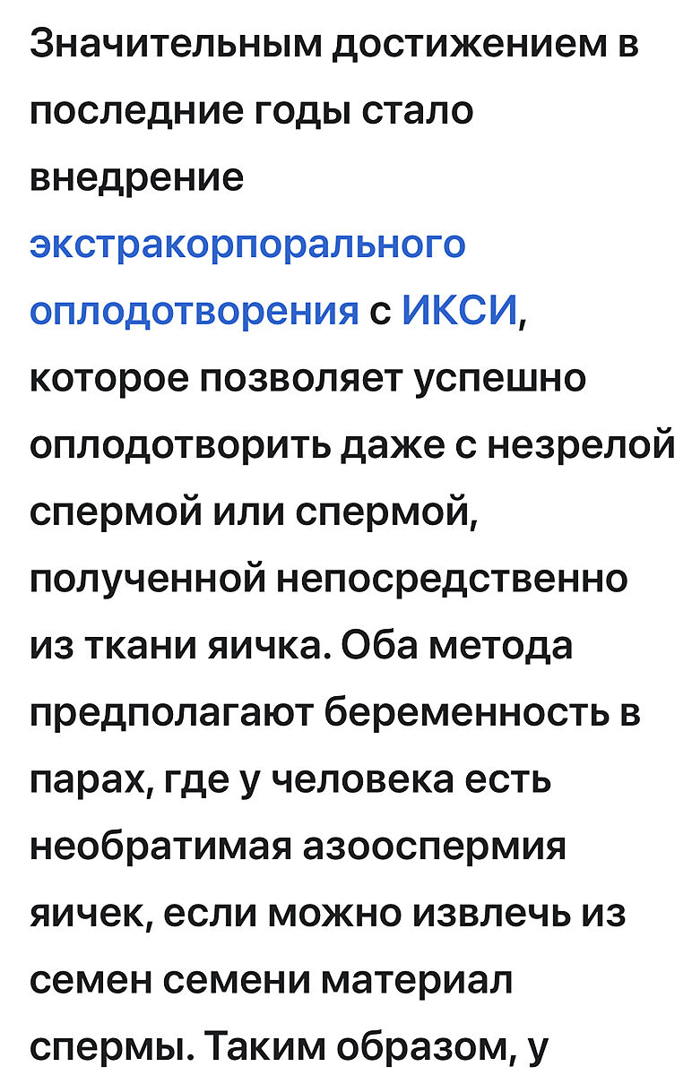 Сделали ЭКО +икси с выделением сперматозоидов из тестикулярной ткани и удача с первого раза.