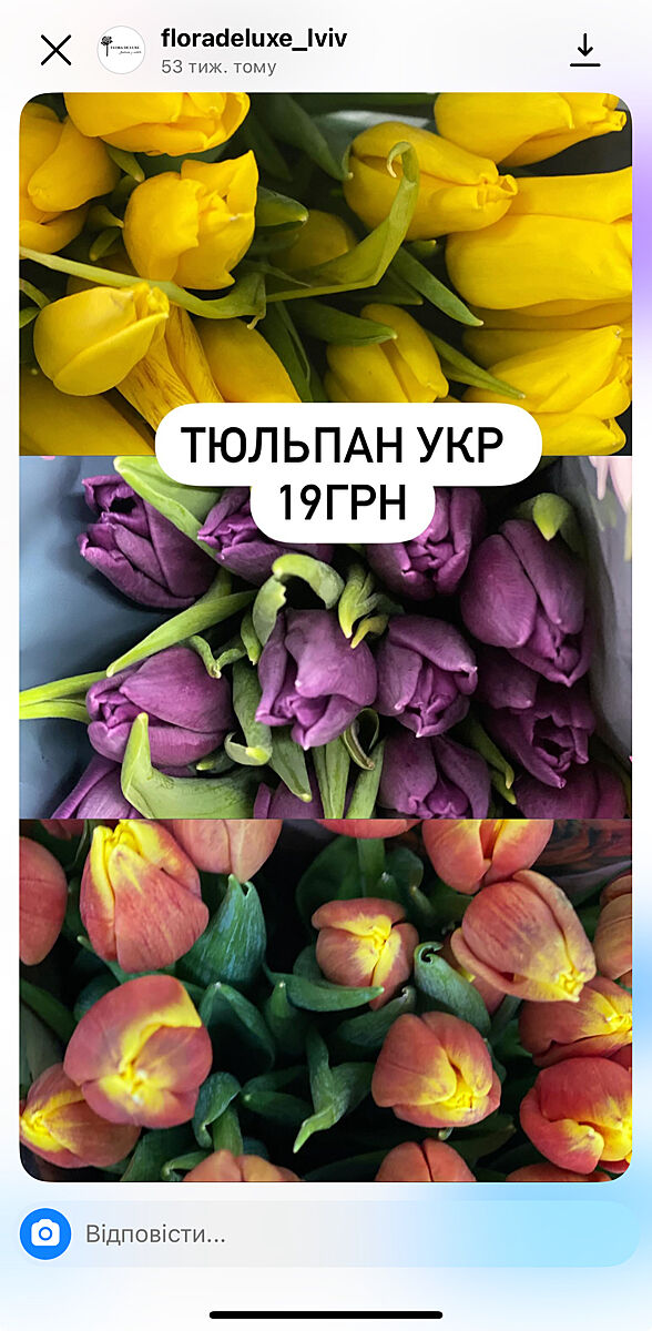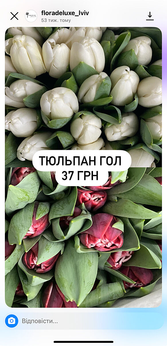 Знайшла ціни на тюльпани минулого року. Перед 8 березня, до речі дівчата вони є в багатьох містах, в них гуртова ціна і завжди свіжі квіти, замовляю роки 4 в них