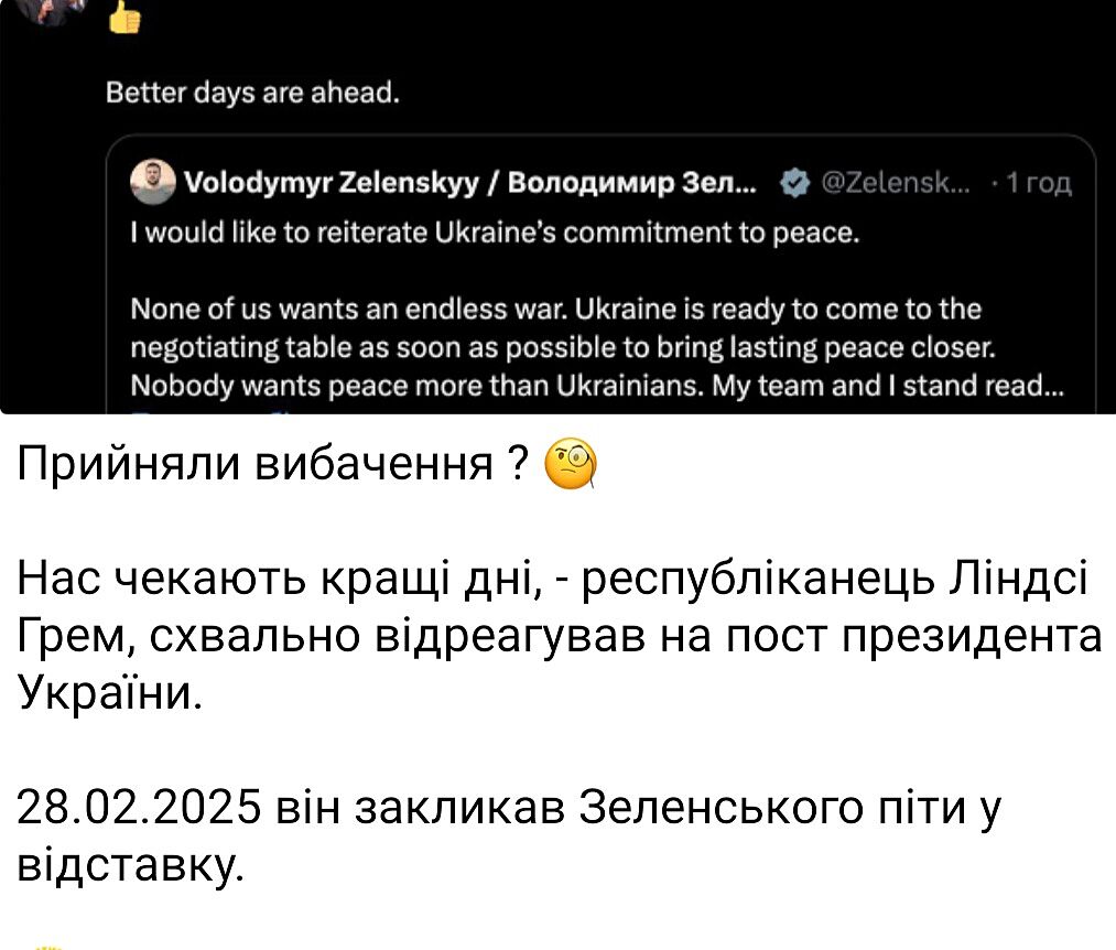 Заради України звичайно потрібно було б вибачитися тільки от проблема що це нічого не дасть. Трамп з самого початку збирався послати Україну і зробив би це навіть цілуй йому Зеленський жопу.