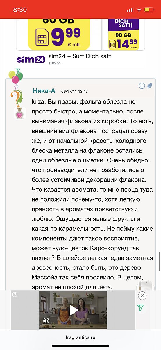Так він знятий. Але парфуми довго зберігаються