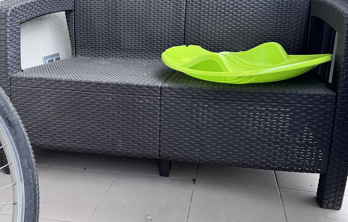 Открытый балкон. И голуби находят эту дырку под диваном очень привлекательной для гнезда, носят туда ветки. В прошлом году я все заставила коробками, но это выглядело так себе и за сезон коробки все превратились в черти что, уже нет у меня столько коробок.