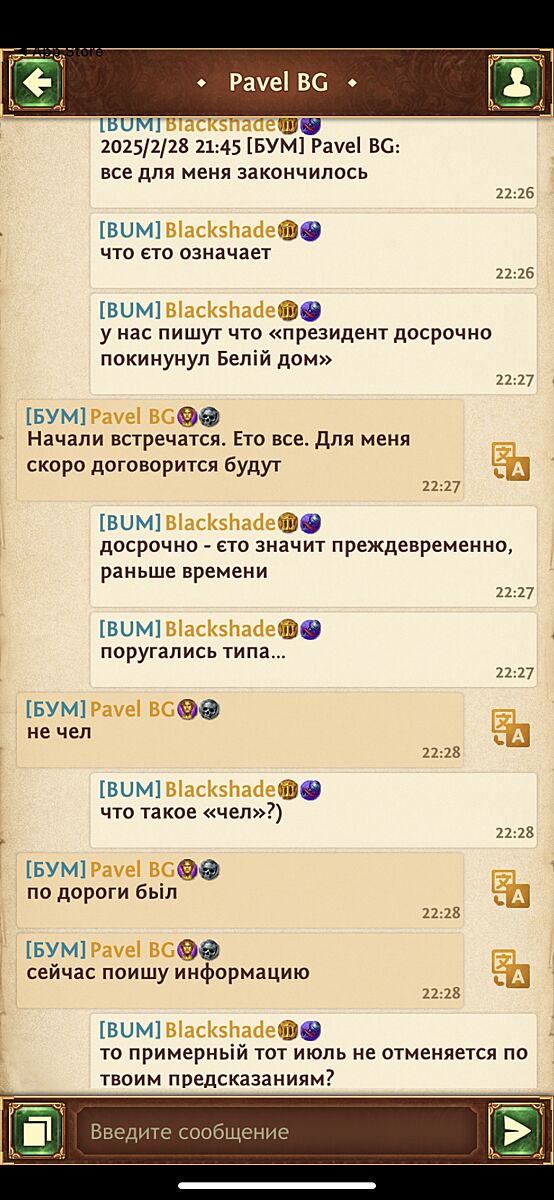 А терміни? Він мені трохи раніше, може з місяць назад, сказав що його думка, що кінець в червні-липні 2025 (що таке «кінець» ми не поглиблювалися); потім був овальний кабінет, і от я перепитала чи щось змінюється стосовно термінів.