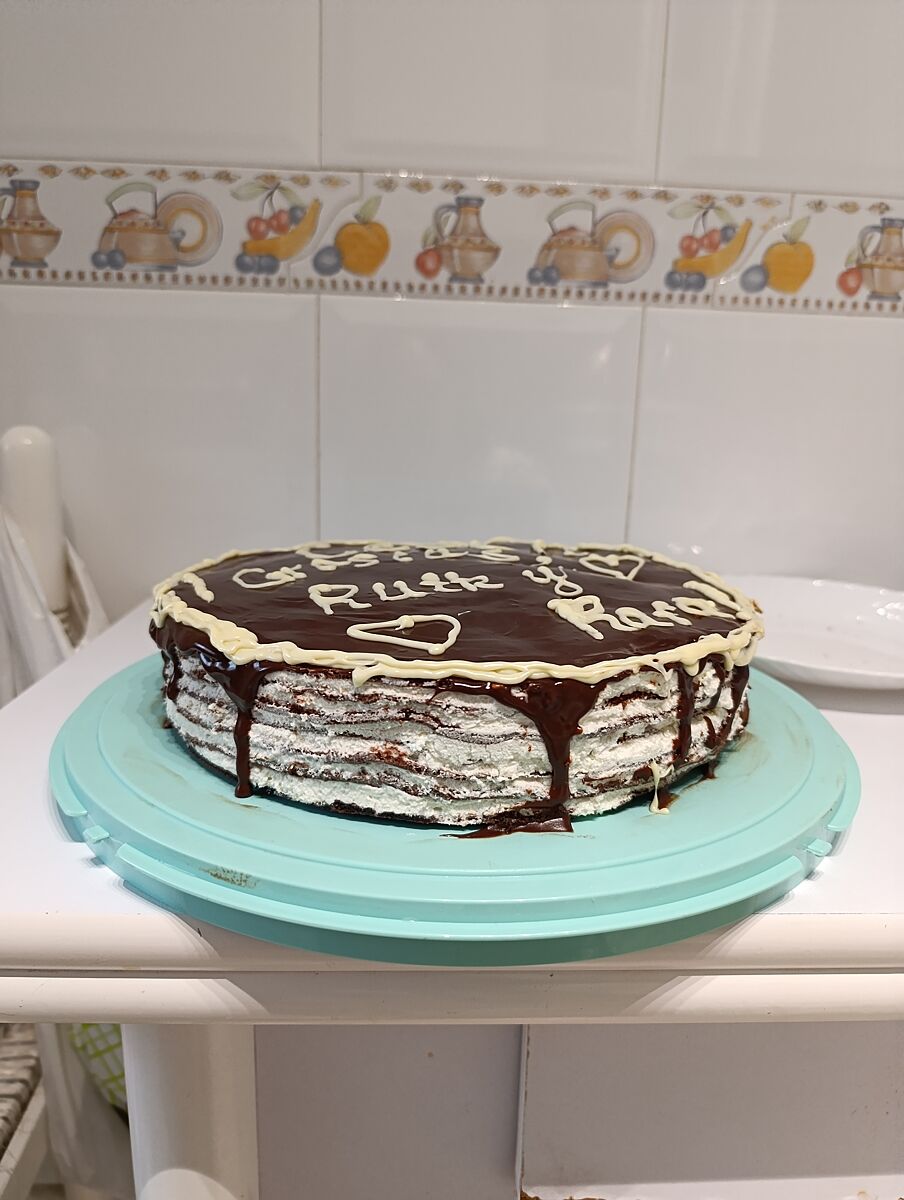Я особо не парюсь.Мне гараздо важней, что это вкусно. Да и они, испанцы( торт для моих преподавателей испанского, я окончила базовый курс до уровня В2 с ними), особо не заморачиваются с декором, красиво/ некрасиво. У них в кондитерских продается , то ,что делает дома у нас среднестатистическая хозяйка украинка