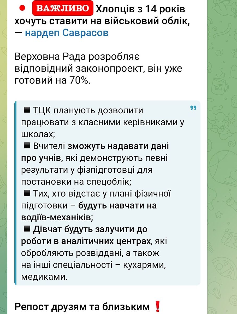 С сентября еще начинается военная подготовка в ВУЗах, так шо все будет Ок! Не хотела молодежь служить срочку в мирной Украине-будет теперь изучать военную науку в полях-как завещал Цезарь!