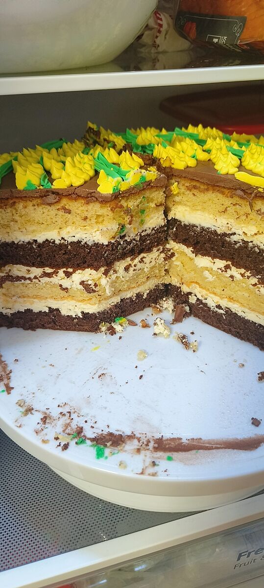 Можливо і смачний, у нашому регіоні печуть пляцки, щоб там була різна начинка, мак, горіхи, такі торти у нас неходові. Останній пекла Реверанс, фото одне моє, а інше у розрізіз рецепта