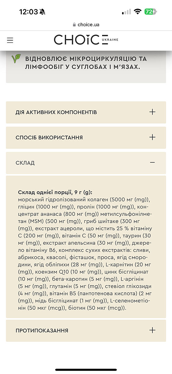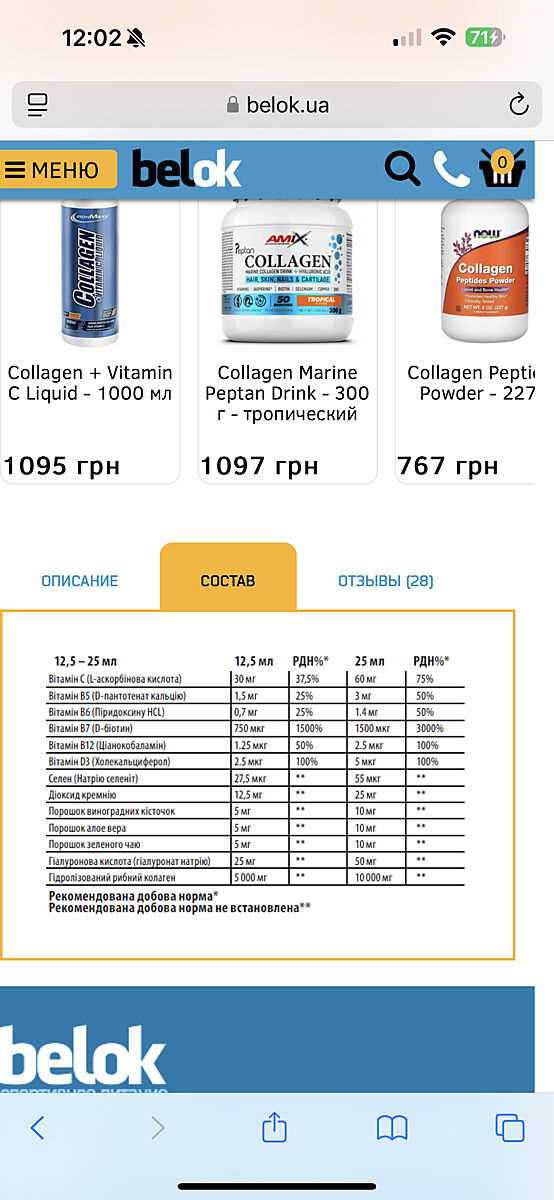По поводу коллагена, если хотите попробовать - выбирайте по цене/составу, гидролизированный морской коллаген и витамин С - главное, что там должно присутствовать. Но вот у choice концентрация 5000 мг, 15 порций 1296 грн, а у sporter (тоже наш бренд от сети белок) те же 5000мг за 40 порций цена 929 грн. Переплачивать в разы за всякие экстракты фасоли - как по мне бессмысленно
