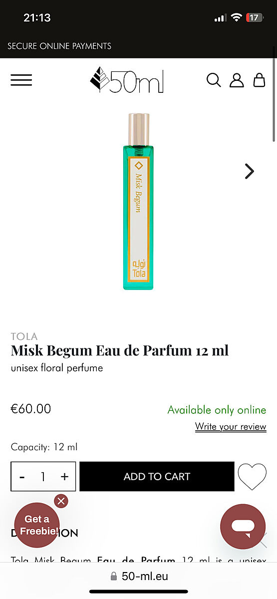 В 60 евровом подарочная карта на 50€ , а за 10€ вы берёте TOLA Misk Begum Edp 12 ml , который стоит 60€ . ( скрин 2,3)