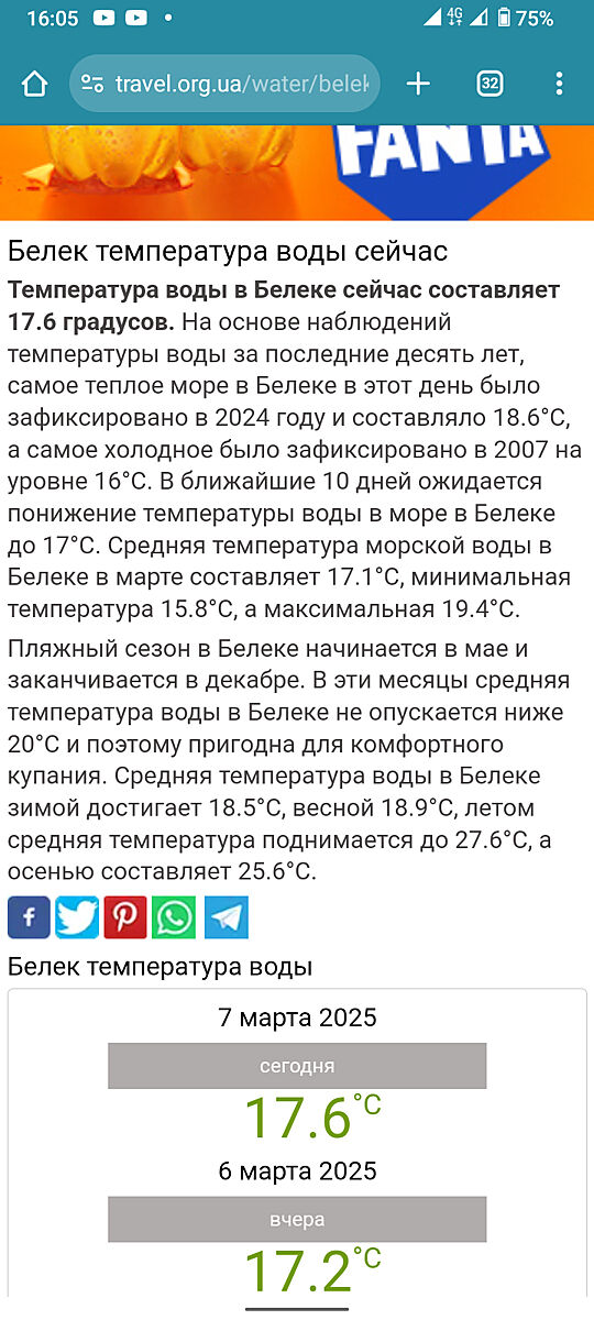 Ну все же мы разные. Для меня нормальное море это в сентябре+27., холоднее уже дискомфортно. Для моей сотрудницы море выше 18 градусов это уже теплый компот