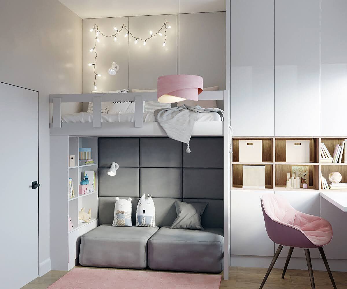Якщо в дитячу - максимально закриті шафи. Щоб меньше було видно безлад і меньше пилу витирати довелося в майбутньому.