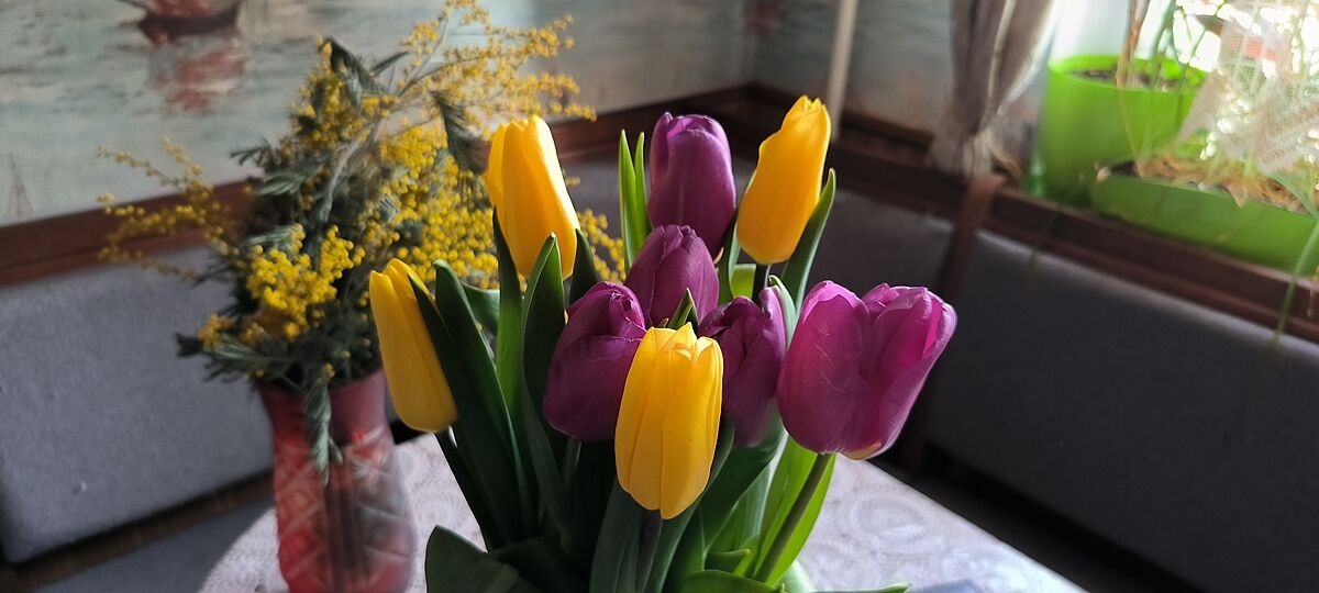 поки тільки від сина отримала тюльпани, чоловік десь ще бродить по магазинах))