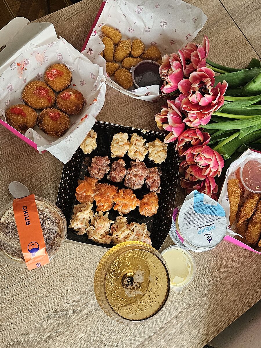 Мені мої сини влаштували справжнє свято)) старший син квіти та суші, малий сережки.. так мило.. я сьогодні не реально щаслива!