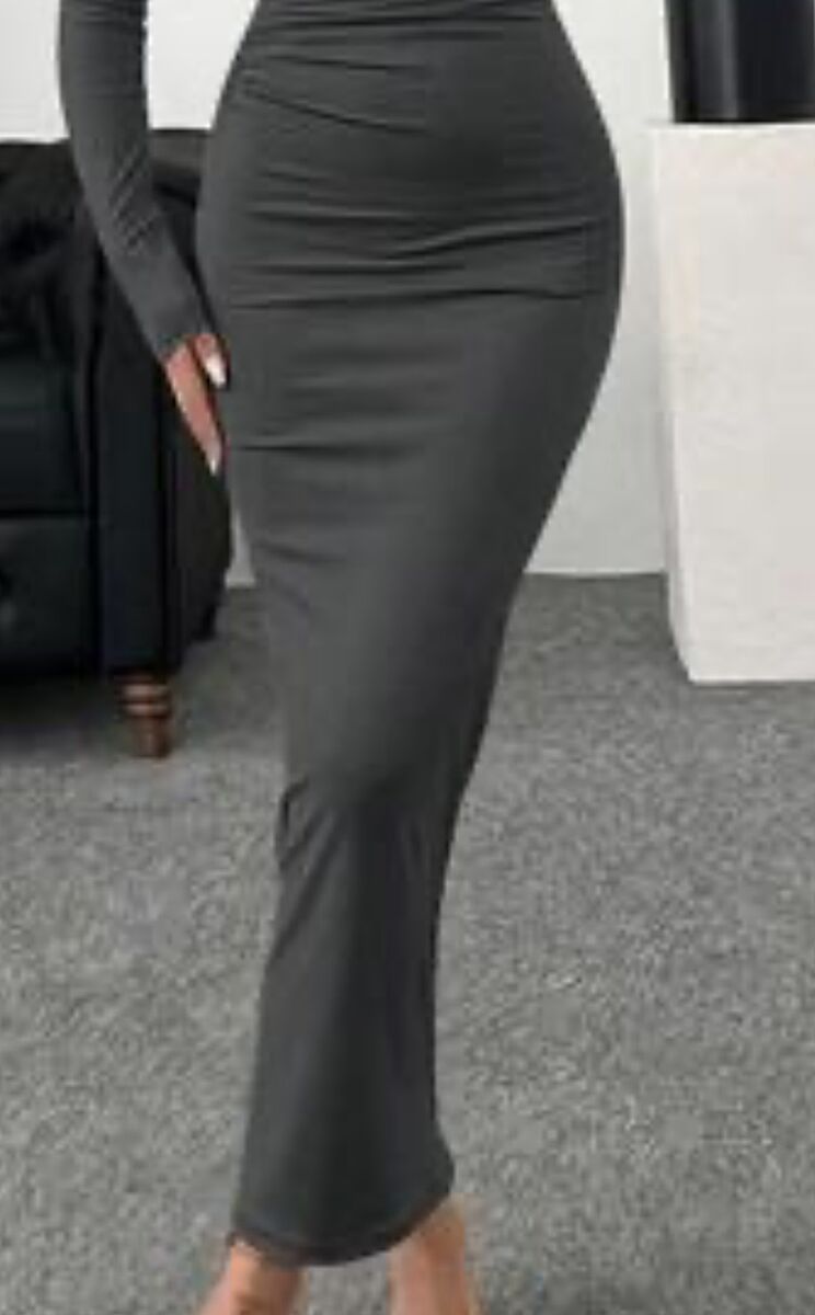 Если сделать разрез, оно силтно растопырится и будет что попало. Я бы убрала длину. Фигура очень красивая между прочим.