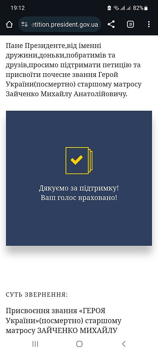 Прошу вас,розглянути петицію про присвоєння звання Героя України (посмертно)військовослужбовцю,