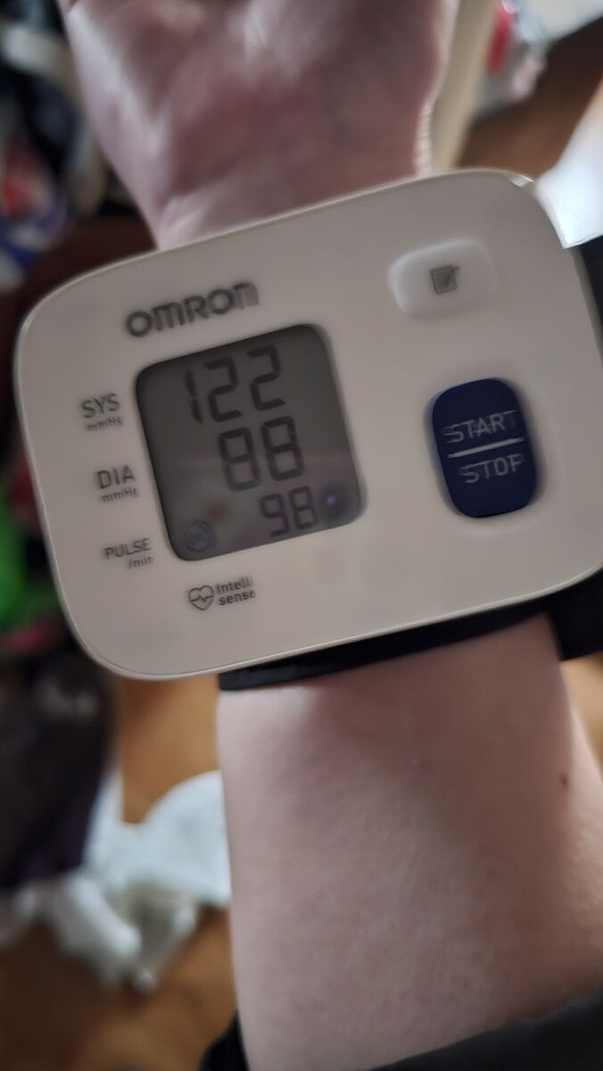 Не, выше локтя. У меня один, на случай проверки причины головной боли ))