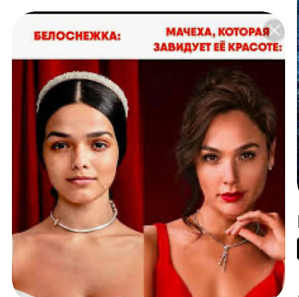 хмм, а реально в чем прикол, белоснежка без белой кожи, и Галь которая красивее ее 🤔
