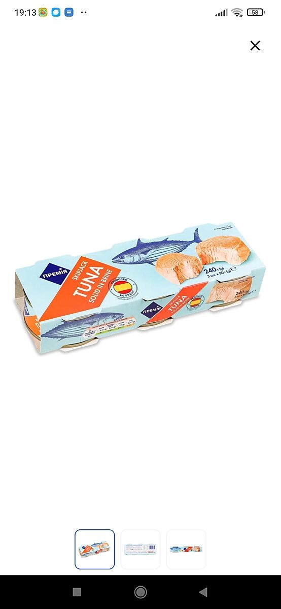 Взяла премия в собственном соку 3 маленькие баночки по 80 грамм по акции 1+1 вышло 159,19 за 6 баночек)