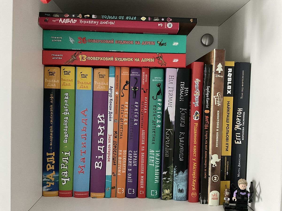 Весь Сашко Дерманський - дитина просто обожнює. Джуді Муді, 36 і 6 котів. Джури козака Швайки - сподобалося - я навіть сама з задоволенням прочитала. Гаррі Поттер - звичайно, Нестайко