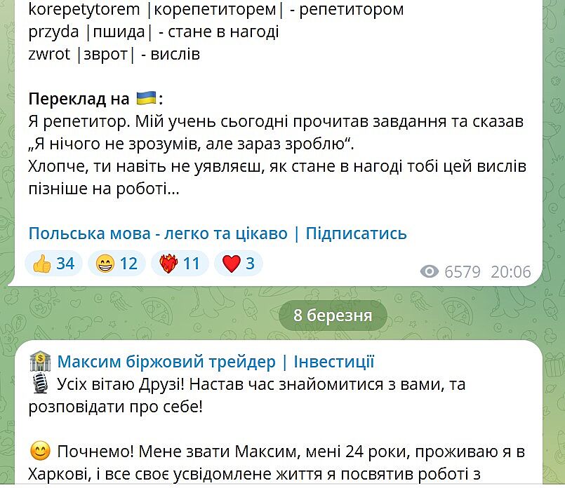И вот тебе, здрасьте, 8 марта канал уже называется "Максим біржовий трейдер" и наполнение канала соответствующее